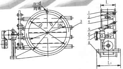 1.閥體 2.百葉板 3.閥軸 4.連桿 5.連桿軸 6.曲柄 7.伯納德執(zhí)行器 8.支架